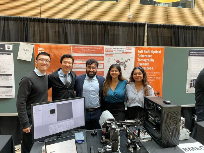 This 8-month capstone project, developed in collaboration with the COIL laboratory at Vancouver General Hospital alongside 4 students, aimed to revolutionize ocular disease diagnosis and monitoring with a novel full field optical coherence tomography (FF-OCT) microscope. By enhancing optical microscope systems with advanced optical coherence technologies, the project facilitates precise detection and management of conditions such as glaucoma and macular degeneration. This innovation promises to significantly improve patient outcomes and reduce healthcare costs by providing detailed insights into cellular dynamics and molecular interactions within the eye.